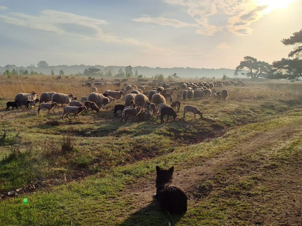 In het Mandefjild zetten we een schaapskudde in om de heide gezond te houden. Schapen helpen om grassen en jonge boompjes weg te grazen, zodat heideplanten en de soorten die daarbij horen meer ruimte krijgen. Begrazing is daarmee een belangrijk onderdeel van ons natuurbeheer. De schaapskudde graast nu tijdelijk in (of vlak langs) de holle weg. In deze periode werken we met kuddebeschermingshonden. Dit zijn speciaal opgeleide werkhonden met één duidelijke taak: de kudde beschermen. Ze zorgen voor rust binnen de kudde en houden mogelijke verstoringen op afstand.