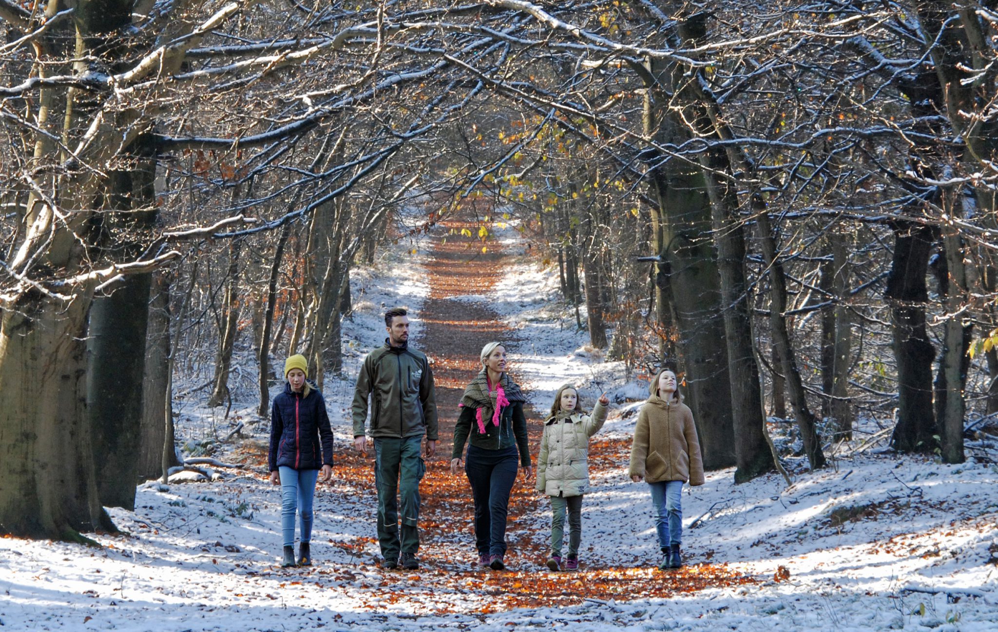 Winterwandeling langs damherten vlakbij Katlijk