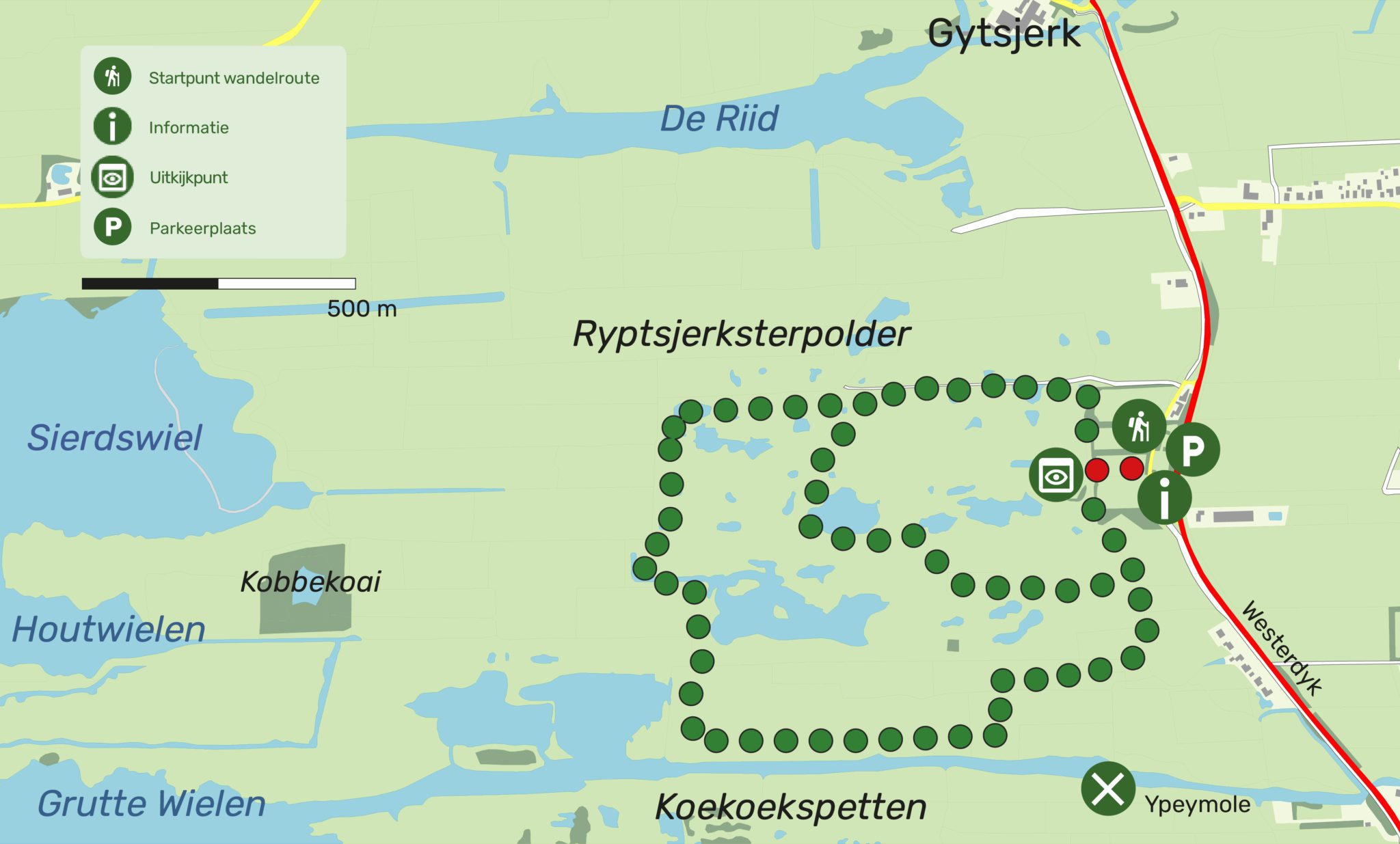 Vanwege de winterrust en het broedseizoen is de wandelroute door de polder alleen toegankelijk van 15 juni tot 1 oktober. Het uitkijkpunt in de Ryptsjerksterpolder is rolstoeltoegankelijk.