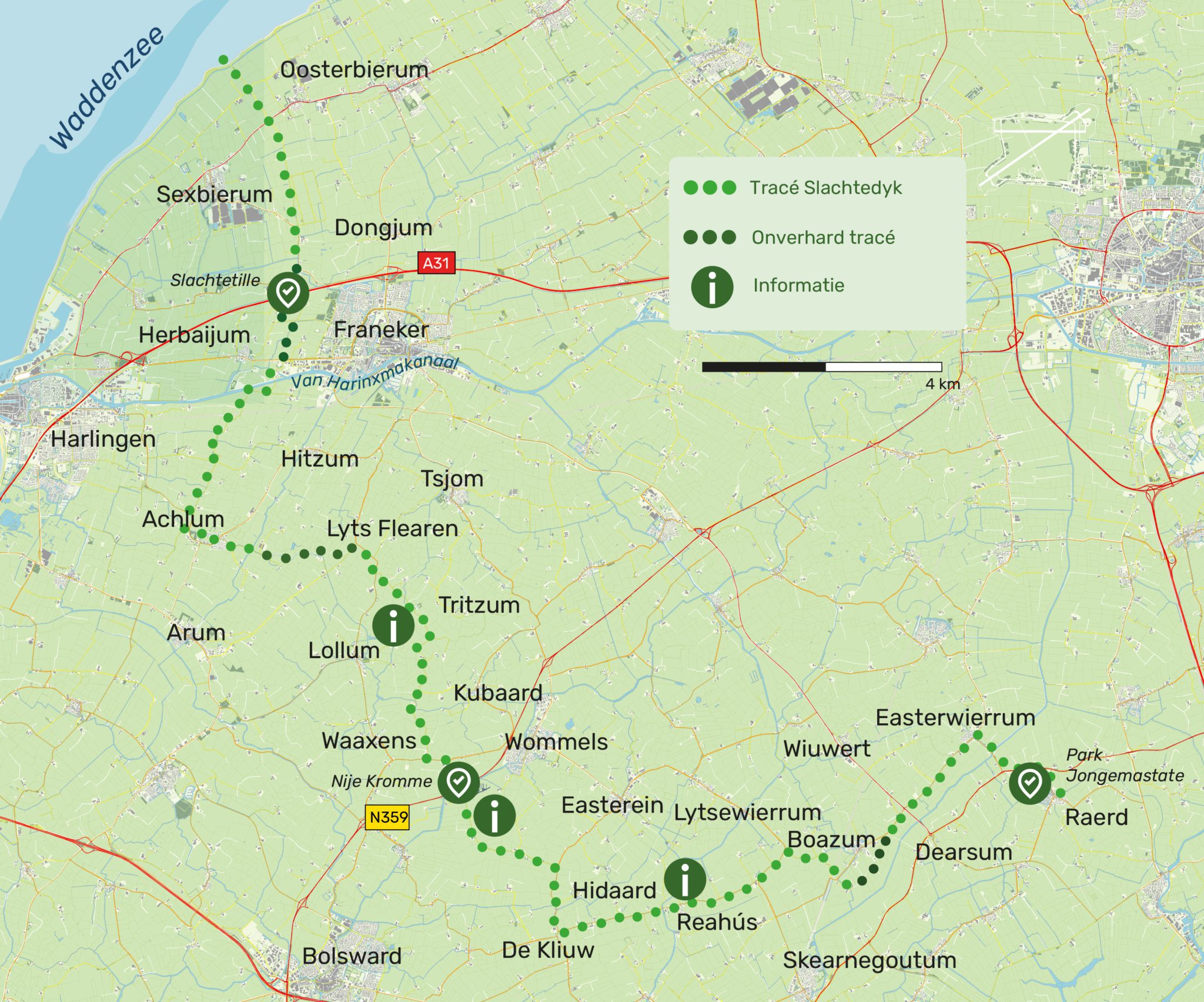 Om te zorgen voor variatie in bloemen en kruiden op de Slachtedyk maaien we het gras twee keer per jaar in juni-juli en een keer in september-oktober. It Fryske Gea heeft met een aantal buurboeren een overeenkomst. Zij halen het gras na het maaien gelijk voor ons weg. De boeren gebruiken het maaisel als hooi voor hun paarden, koeien en schapen of als strooisel in de stal. Deze aanpak grijpt terug op een eeuwenoude traditie. Ook vroeger werd het bermgras van de Slachtedyk door aanwonende boeren gebruikt.