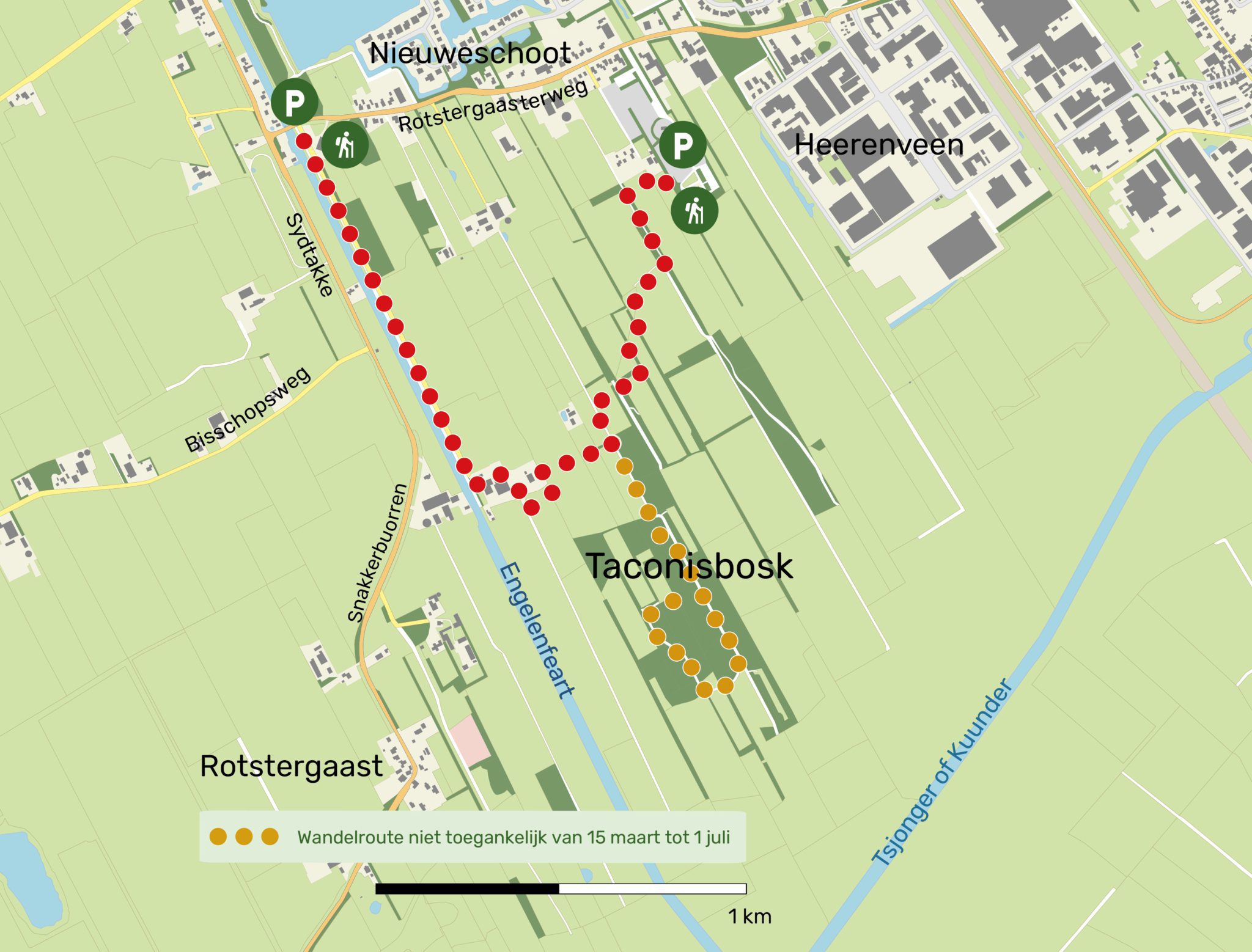 Dit historische Tsjerkepaad (kerkenpad) verbindt Oudeschoot met Rotstergaast en biedt een prachtig uitzicht over de langgerekte akkers en weiden van de Tsjongervallei. Het pad, dat door smalle doorgangen en langs oude boerderijen leidt, biedt een prachtige kennismaking met het coulisselandschap.