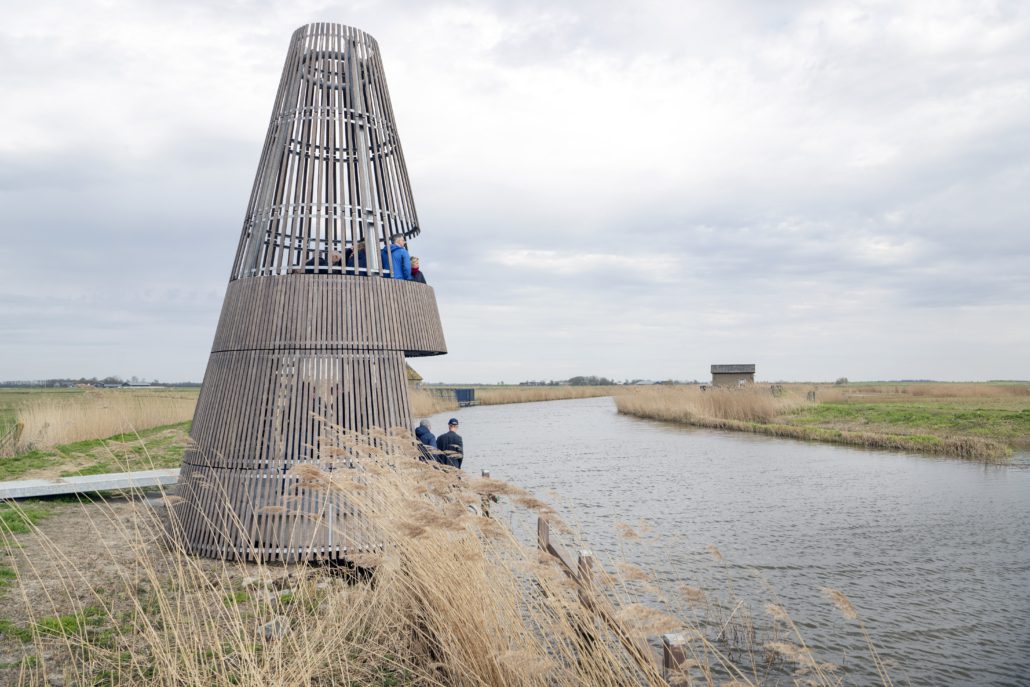 De toren is gemaakt van staal en bamboe en bereikbaar via een loopbrug. Eenmaal binnen kun je kiezen: daal je af naar het niveau van de Súd Ie of klim je omhoog naar het uitkijkplateau? Vanaf boven kijk je uit over een open, nat en vogelrijk landschap. Juist omdat de Eanjumerkolken zelf niet toegankelijk is, biedt deze plek een bijzondere kans om het gebied toch van dichtbij te beleven.